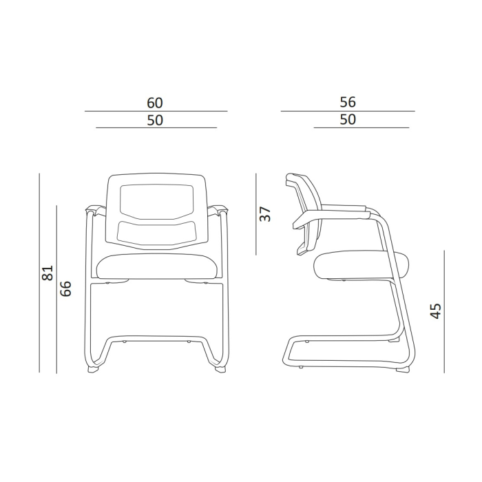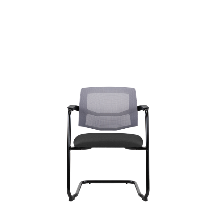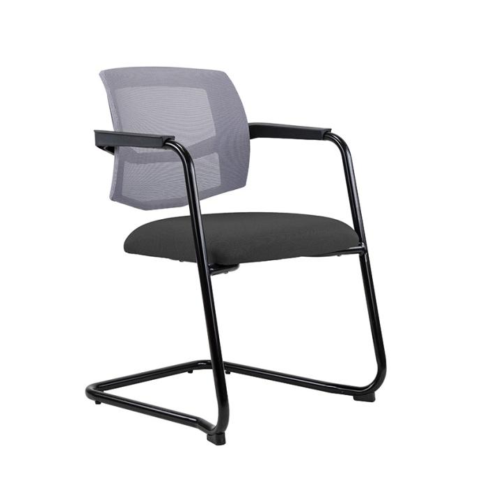 Moderná konferenčná stolička s lyžinovou podnožou, čalúneným sedákom