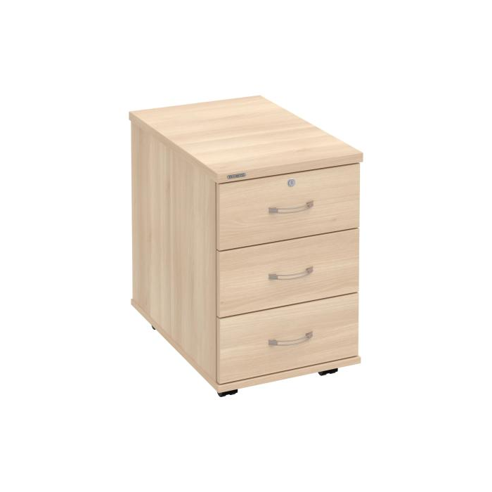 Kontajnery - všetko uložené a vždy poruke. Kontajnery sa väčšinou umiestňujú pod stoly. Mobilné modely sú vybavené kolieskami, je možné ich premiestniť podľa potreby. Základným materiálom korpusov je kvalitná laminovaná drevotriesková doska hrúbky 18 mm. Pre dlhšiu životnosť je na horný diel korpusu použitá doska, ktorej hrúbka je 25 mm. Korpusy a čelá zásuviek sú chránené proti poškodeniu hranou ABS 2 mm. Horná doska ma hĺbku 80. 3-zásuvkový kontajner má uzamykatelnú iba 1 zásuvku. Zásuvky sú z plastu, ktorý je ľahko umývateľný a vhodný pre jednoduchú údržbu. Praktickou súčasťou vrchnej zásuvky je prehľadný organizér a priestorové deliace priečky. Vaše ceruzky, sponky a ďalšie kancelárske potreby budú vždy na poriadku. Organizér a deliace priečky sú súčasťou každého kontajnera. Na kontajnery Hobis sa vzťahuje päťročná záruka.