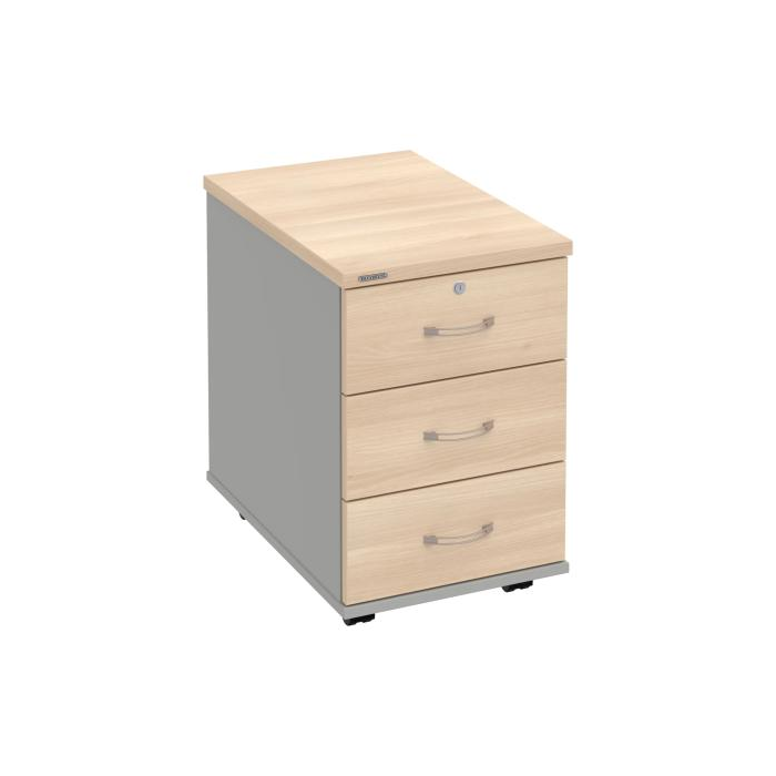 Kontajnery - všetko uložené a vždy poruke. Kontajnery sa väčšinou umiestňujú pod stoly. Mobilné modely sú vybavené kolieskami, je možné ich premiestniť podľa potreby. Základným materiálom korpusov je kvalitná laminovaná drevotriesková doska hrúbky 18 mm. Pre dlhšiu životnosť je na horný diel korpusu použitá doska, ktorej hrúbka je 25 mm. Korpusy a čelá zásuviek sú chránené proti poškodeniu hranou ABS 2 mm. Horná doska ma hĺbku 80. 3-zásuvkový kontajner má uzamykatelnú iba 1 zásuvku. Zásuvky sú z plastu, ktorý je ľahko umývateľný a vhodný pre jednoduchú údržbu. Praktickou súčasťou vrchnej zásuvky je prehľadný organizér a priestorové deliace priečky. Vaše ceruzky, sponky a ďalšie kancelárske potreby budú vždy na poriadku. Organizér a deliace priečky sú súčasťou každého kontajnera. Na kontajnery Hobis sa vzťahuje päťročná záruka.