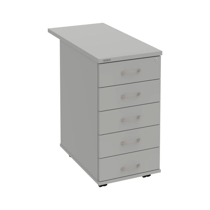 Kontajnery - všetko uložené a vždy poruke. Kontajnery sa väčšinou umiestňujú pod stoly. Mobilné modely sú vybavené kolieskami, je možné ich premiestniť podľa potreby. Základným materiálom korpusov je kvalitná laminovaná drevotriesková doska hrúbky 18 mm. Pre dlhšiu životnosť je na horný diel korpusu použitá doska, ktorej hrúbka je 25 mm. Korpusy a čelá zásuviek sú chránené proti poškodeniu hranou ABS 2 mm. Horná doska ma hĺbku 80 cm. Kontajnery sú vybavené zámkom s centrálnym zamykaním. Vďaka integrovanému systému STOP-CONTROL s centrálnym zámkom u väčšiny kontajnerov sa nemusíte báť prevrhnutiu kontajnera alebo prípadného privretia ruky. Systém zaručí, že pri otvorení jednej zásuvky sa ostatné zásuvky automaticky zablokujú. Zásuvky sú z plastu, ktorý je ľahko umývateľný a vhodný pre jednoduchú údržbu. Praktickou súčasťou vrchnej zásuvky je prehľadný organizér a priestorové deliace priečky. Vaše ceruzky, sponky a ďalšie kancelárske potreby budú vždy na poriadku. Organizér a deliace priečky sú súčasťou každého kontajnera. Na kontajnery Hobis sa vzťahuje päťročná záruka.