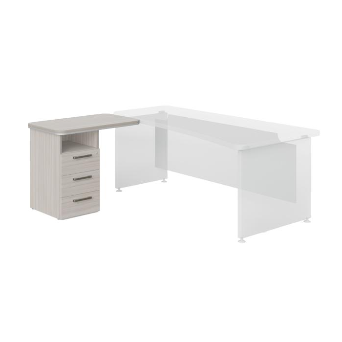 Horná doska prístavného kontajnera sa vyrába z LTD hrúbky 38 mm a je po obvode vybavená dvojfarebnou akrylovou 3D hranou, odolnou proti nárazom. Všetky ostatné diely sú s LTD hrúbky 18 mm. Boky a dno kontajnera sú zabezpečené hranou ABS hrúbky 0,5 mm. Čelá zásuviek sú olepené hranou ABS 2 mm. Kontajner je vybavený centrálnym zámkom. Kontajner je inštalovaný na rektifikačných nôžkach. Kontajner sa vyrába v ľavom i pravom prevedení. Na stoly a kontajnery WELS poskytujeme 3 ročnú záruku. Farebnosť je ilustratívna.