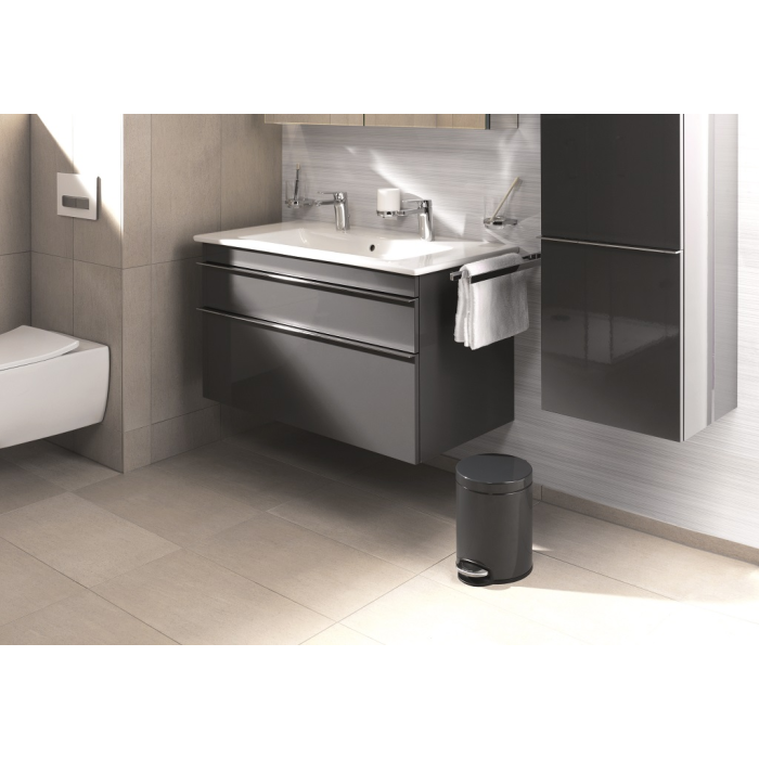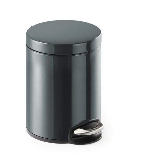 Odpadkový kôš na papier z kovu vybavený vyberateľnou vnútornou nádobou z plastu a plastovou objímkou na vrecko na odpadky. Spodná časť z plastu proti korózii a pre lepšiu stabilitu. Veko na pedál sa zatvára ticho. Objem 5 l, rozmery 260 x 290 mm.