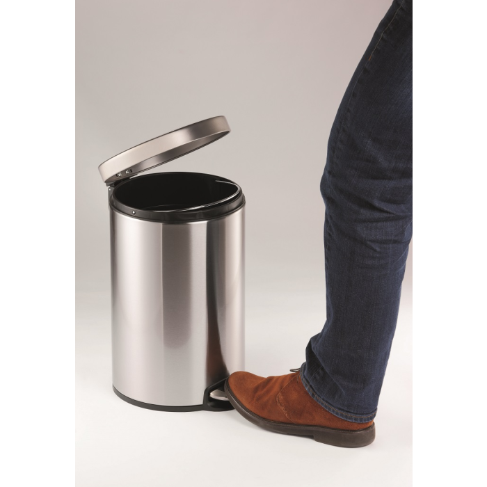 na vrecko na odpadky. Spodná časť z plastu proti korózii a pre lepšiu stabilitu. Veko na pedál sa zatvára ticho. Úprava z nerezovej ocele je potiahnutá vrstvou proti neželaným odtlačkom prstov. Objem 12 l, rozmery 310 x 400 mm.