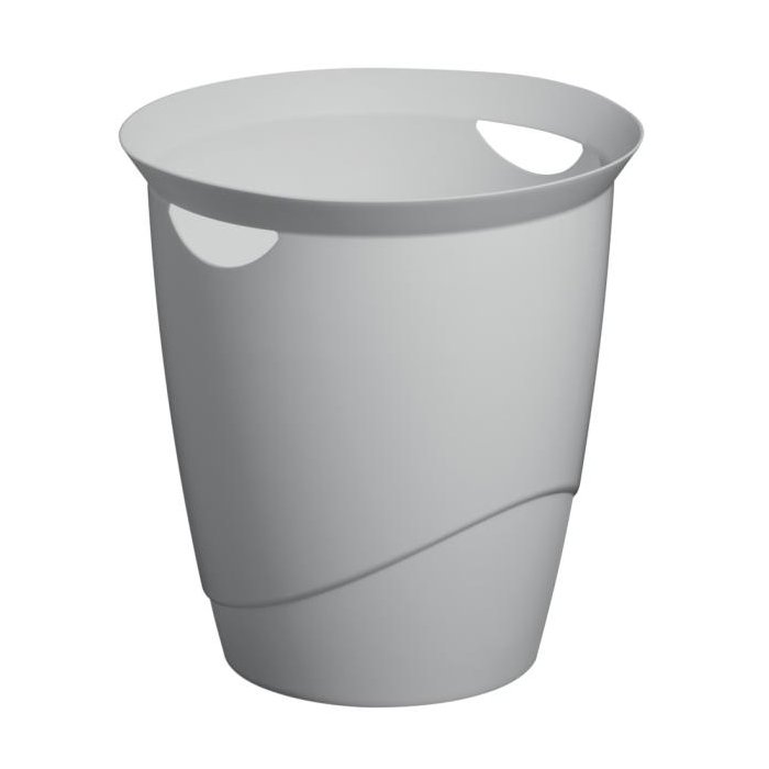 Okrúhly, elegantný odpadkový kôš, vyrobený z recyklovaných plastov v kvalite Blue Angel. Objem: 16 litrov. S držadlami na prenášanie. Rozmery: 330 x 315 mm (V x Ø). Farba sivá.