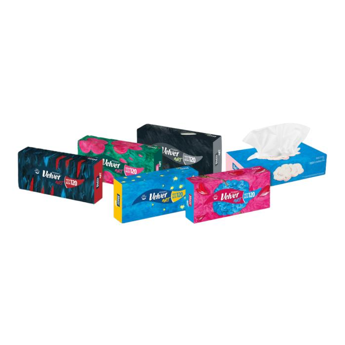 Velvet Art sú kozmetické obrúsky, ktoré prekvapia - vo vnútri krabičky je 120 vreckoviek plných hebkosti. Zvonku sú vyobrazené skutočné maľby umelca Pawła Kowalewského. Každá krabička je „malým umeleckým dielom“ s asociáciami, ktoré sú pre každého príjemcu iné! Sýte farby a pútavé grafické motívy vyvolávajú emócie a dotýkajú sa umeleckého cítenia, ktoré má v sebe každý z nás! Vezmite si umenie domov. 120 útržkov, 3 vrstvy, 100% celulóza