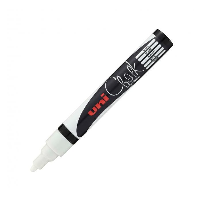 Kriedové popisovače s možnosťou použitia pre priemysel, dekoráciu, informačné tabule a hobby. Na čistých a odmastených neporéznych povrchoch text po zaschnutí odoláva vode a UV, ale je stierateľný vlhkou handričkou. Vhodné na okná, zrkadlá, kovové a plastové povrchy. Hrot guľatý, šírka stopy 1,8 - 2,5 mm. Farba biela.