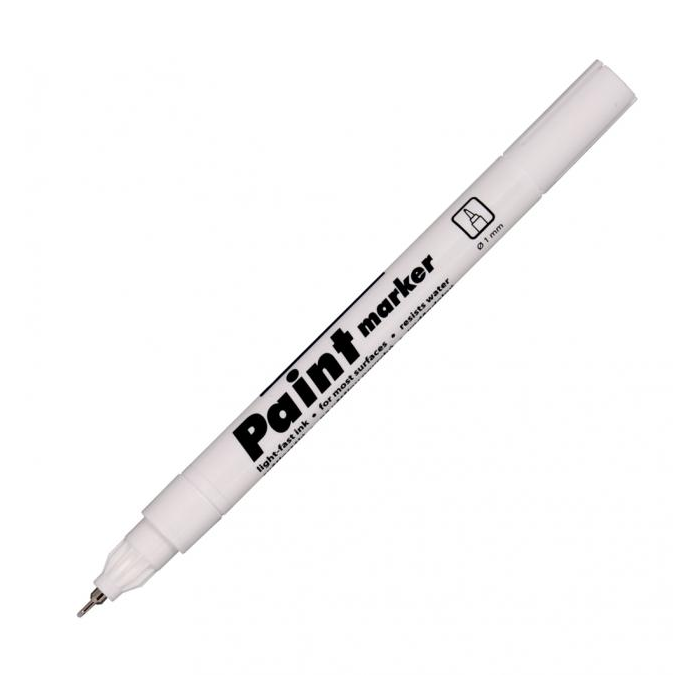Lakový popisovač s plastovým hrotom v kovovej objímke píše na neporézne povrchy. Svetlostály atrament po zaschnutí odolá vode, poveternostným vplyvom aj oderu. Šírka stopy 0,7 mm. Väčšie balenie 10 ks v jednej farbe. Farba biela.