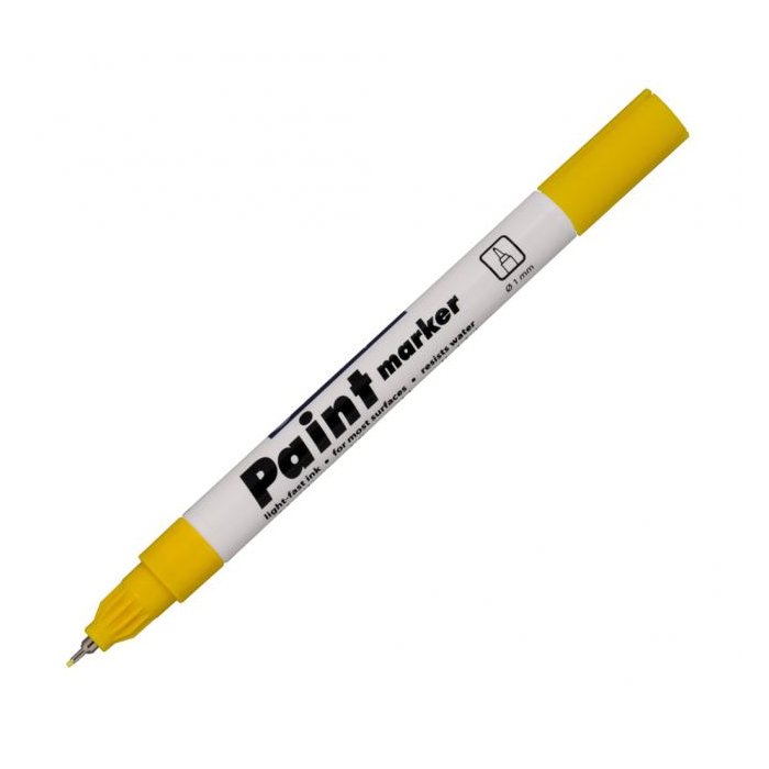 Lakový popisovač s plastovým hrotom v kovovej objímke píše na neporézne povrchy. Svetlostály atrament po zaschnutí odolá vode, poveternostným vplyvom aj oderu. Šírka stopy 0,7 mm. Väčšie balenie 10 ks v jednej farbe. Farba žltá.