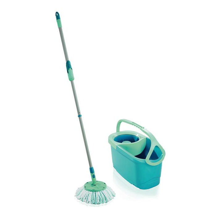 Rotačná upratovacia súprava Clean Twist Disc Mop Ergo určená na umývanie podláh bez kontaktu rúk a špinavej vody značky Leifheit. Ideálna na dlažbu a kamenné podlahy.