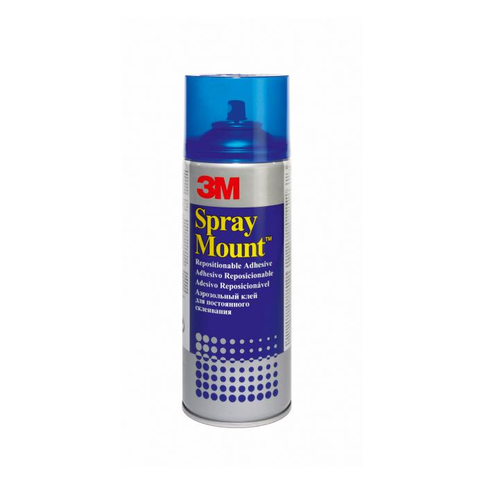 - 3M™ SprayMount™ je ideálna voľba pre umenie a dizajnový trh. Kľúčovou výhodou je možnosť premiestňovania lepených materiálov.