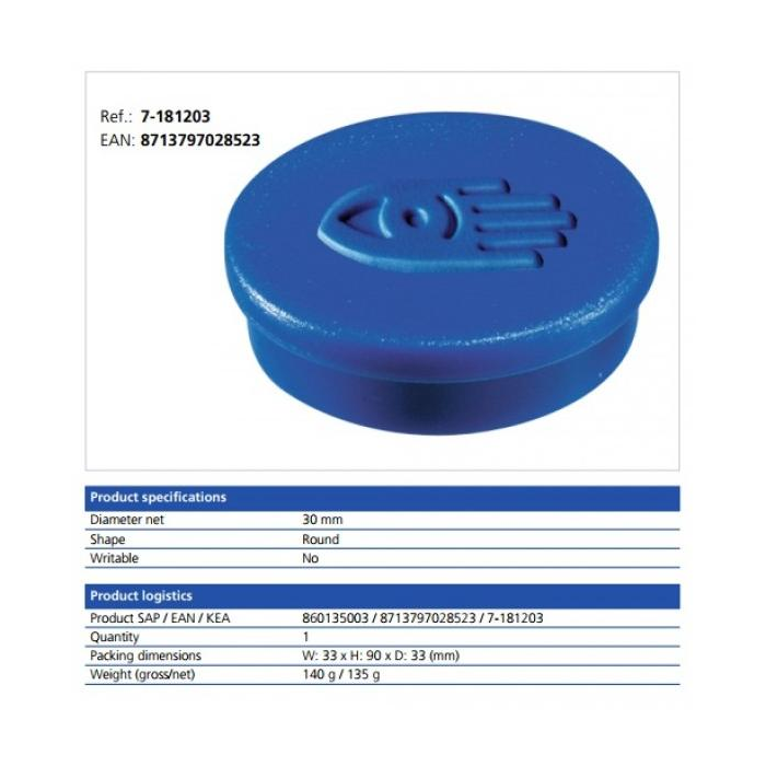 Magnet 30 mm modrý 10 ks