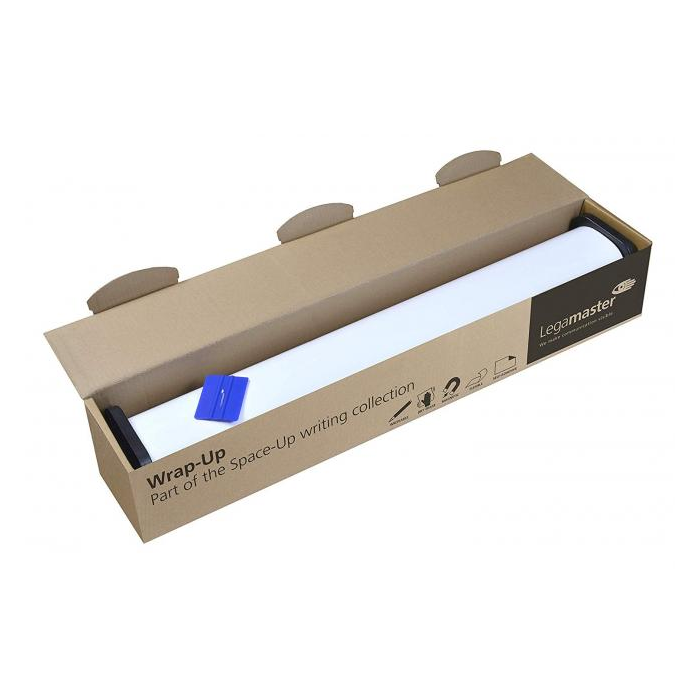 So samolepiacou fóliou Wrap-up môžete zmeniť akýkoľvek hladký povrch, napr. sadrokartón, sklo, kovový povrch, drevo, dvere, skrine a steny na magnetickú tabuľu bez vŕtania. Fólia môže byť narezaná do rôznych tvarov, čím je možné vytvoriť široké magnetické písacie plochy, zakryjete ňou celé steny alebo vytvoríte kreatívne tvary. Za predpokladu používania príslušenstva Legamaster výrobca garantuje 3-ročnú záruku. Rozmer 101 x 600 cm. Farba biela.