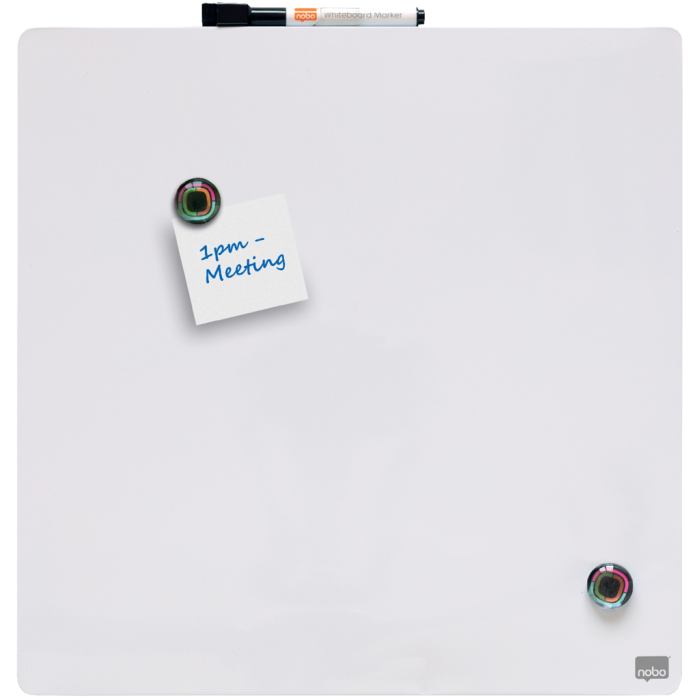 Magnetické, za sucha stierateľné tabule z bezrámčekových štvorcových dielcov Rexel. Obsahujú dva magnety, čierny magnetický popisovač ReWritable s mazacou hubou, montážne magnety a penovú lepiacu pásku. Modulárny systém - dajú sa kombinovať navzájom alebo i s ostatnými nástenkami a popisovacími tabuľami Rexel 360 × 360 mm. Farba biela.