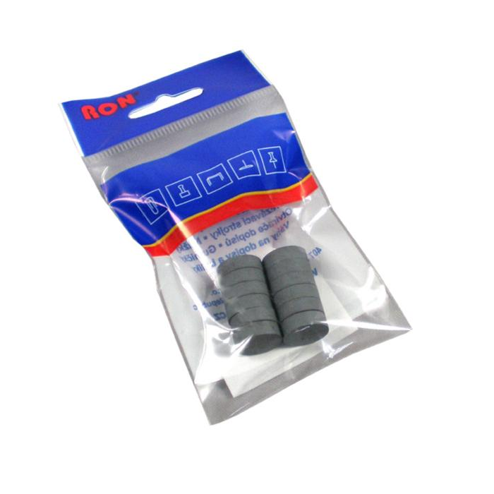 Feritové magnetky RON okrúhle čierne. Priemer: 16mm. 12 magnetov v sáčku. Blistrové balenie.