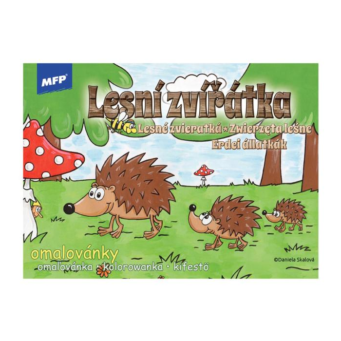Maľovanky rozmerov A5.Lesné zvieratká. Nájdete tu 8 obrázkov a na nich napríklad medveď, ježkovia, líška, veverička, mravce, myšky, zajkovia, jeleň. Tieto maľovanky sú jednoduché a s veľkými obrázkami, teda vhodné aj pre tie najmenšie deti. Vhodné sú aj ako pomôcka pre deti na poznávanie zvieratiek. Vyfarbenie obrázkov pomáha rozvíjať celý rad schopností a šikovnosť, má veľmi veľký vplyv na rozvoj jemnej motoriky rúk.