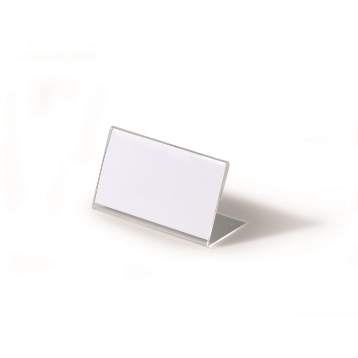 Stabilná stolová menovka „L“ profilu vyrobená z akrylu. Vhodná na konferencie, recepčné pulty, ceny tovarov a popis produktov. Väčšie balenie 10 ks.