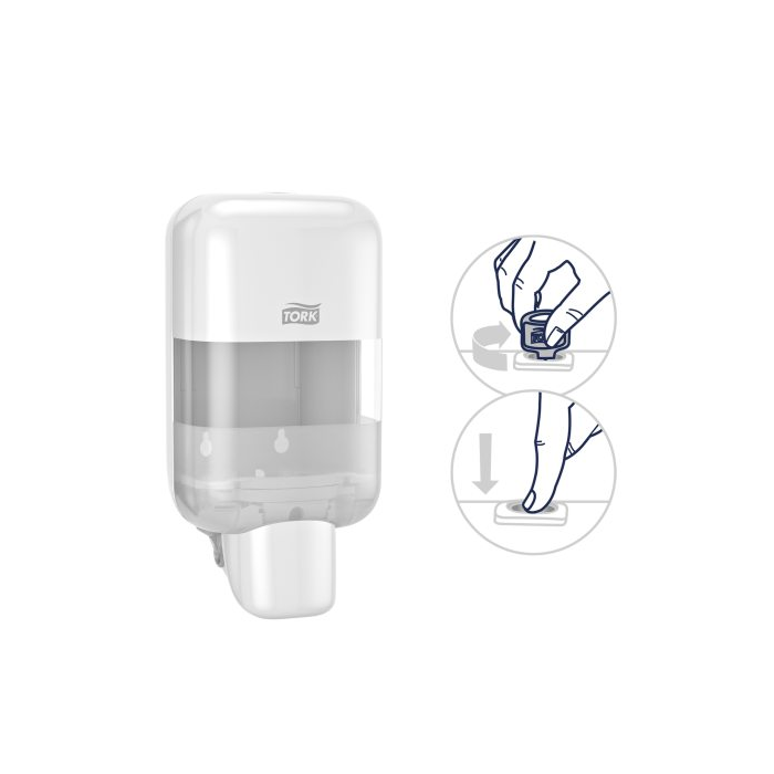 Mini zásobník na mydlá a dezinfekčné prostriedky Tork, biely S5, 0,525l
