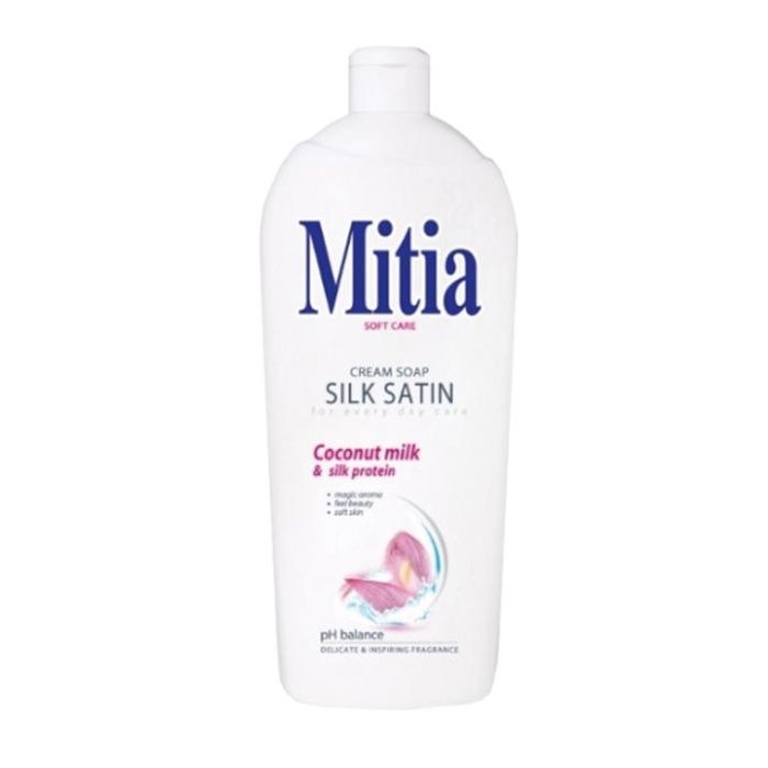 Náplne do tekutých mydiel Mitia s objemom 1 000 mℓ.