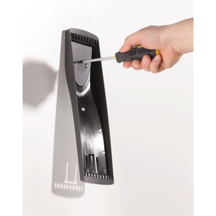 Štýlový nástenný stojan dodávaný s 10 displejovými panelmi a indexami. Ideálny do kancelárií a na verejne prístupné miesta. Otvor na hornej strane panelu zabezpečuje jednoduché vkladanie a v prípade potreby rýchlu výmenu vložených materiálov. Farba panelov čierna.