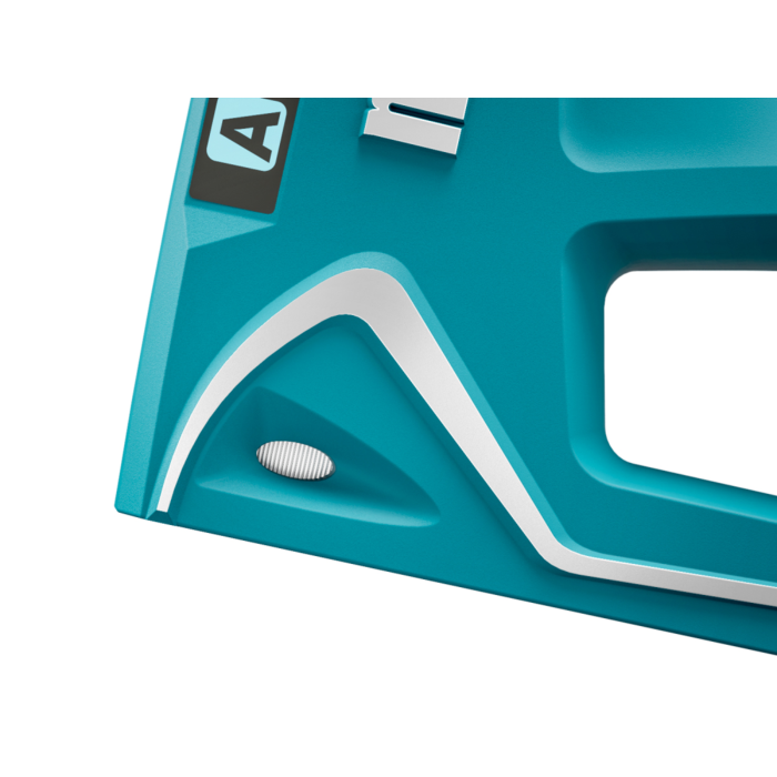 Malá ručná nastreľovačka s vysokokvalitným plastovým krytom na univerzálne použitie, napr. na rýchle napnutie tkaniny do rámu. Spodný plniaci zásobník s bezpečnostnou poistkou na ľahké plnenie spinkami, zámok rukoväte pre skladovanie, kontrolné okienko na sledovanie stavu naplnenia zásobníka. Kapacita: (A) spinky 140 ks.