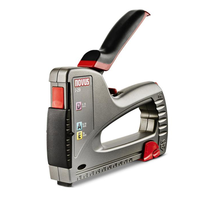Výkonná profesionálna nastreľovačka s nízkym spätným nárazom a tlakovo liatym zinkovým telom pre všetky druhy práce v profesionálnych aplikáciách pre domácich majstrov a pre dielne. Posuvný mechanizmus na ľahké prepínanie medzi tenkými spinkami, klincami a spinkami z plochého drôtu, ergonomická mäkká rukoväť, regulácia sily úderu na manuálne nastavenie podľa daného materiálu, spodný plniaci zásobník s bezpečnostnou poistkou na ľahké plnenie spinkami a klincami, vysunutý úderník pre presné upevnenie na ťažko prístupných miestach, zámok rukoväte pre skladovanie, kontrolné okienko na sledovanie stavu naplnenia zásobníka. Vhodná na čalúnenie nábytku, upevnenie fólie v podkroví, pripevnenie dekoračných líšt. Kapacita: (A) spinky 140 ks, (D) spinky alebo (E) klince 85 ks.