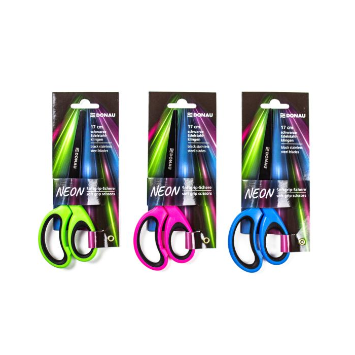 Nožnice s mäkkým úchopom DONAU NEON 17 cm, mix farieb, displej 6 ks