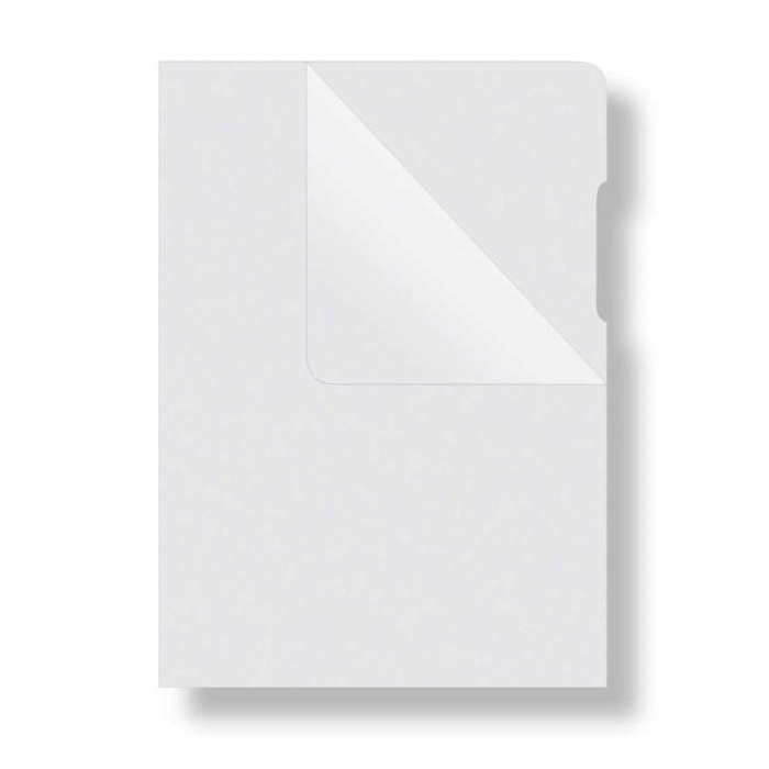 Priehľadný obal na dokumenty z tvrdého polypropylénu. Otvor zhora a po dlhšej strane („L“). Povrch lesklý mliečny, výkroj na ľahšiu manipuláciu, zaoblená horná strana. Formát A4. Balenie 100 ks.