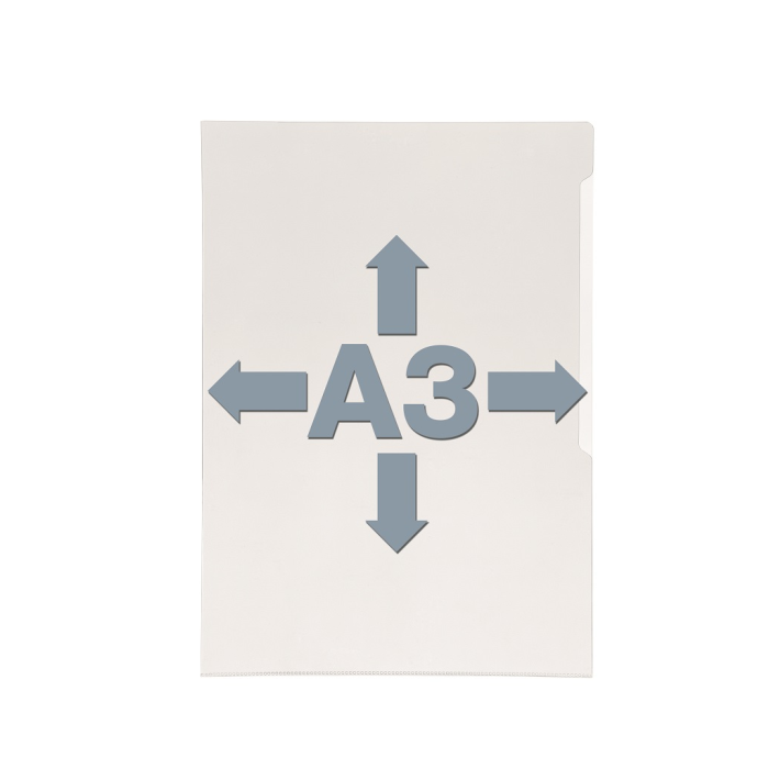 Silný obal na dokumenty formátu A3 prémiovej kvality. Povrch lesklý číry, výkroj na ľahšiu manipuláciu.