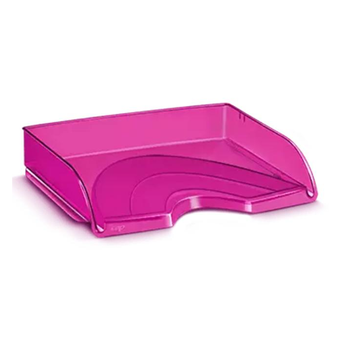 Elegantný odkladač s možnosťou vertikálneho stohovania alebo stohovania stupňovito dozadu. Široký otvor vpredu umožní ľahký prístup k dokumentom a ich triedenie. Je vhodný na dokumenty do veľkosti 24 × 32 cm. Celkové rozmery 341 × 265 × 65,4 mm, kapacita 420 listov (80 g / m²). Materiál 100% odolný vysokokvalitný plast. Väčšie balenie 10 ks. Farba transparentná ružová.