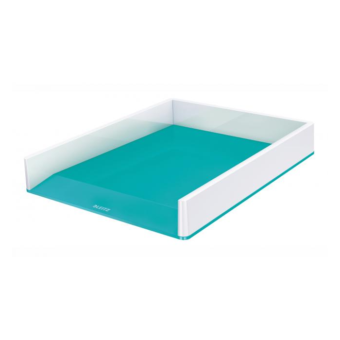 Stohovateľný kancelársky odkladač na dokumenty, časopisy a zložky v dvojfarebnom prevedení v metalických farbách WOW s lesklým povrchom. Farba ľadovo modrá.
