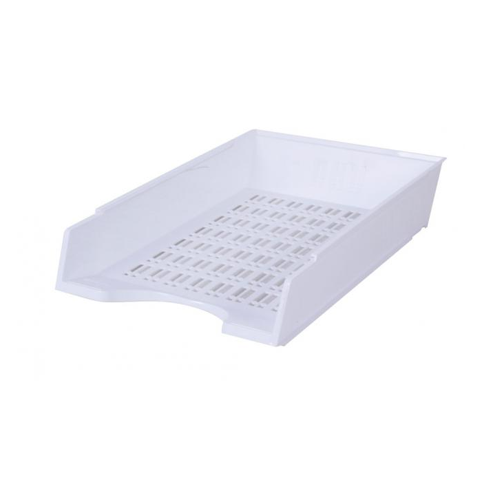 Plastový odkladač na papiere formátu A4 s možnosťou stohovania dozadu. Úprava priehľadná. Väčšie balenie 10 ks.