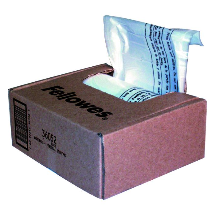 Odpadové vrecia pre skartovačky Fellowes. Objem 23 - 28 l, v balení 100 ks.