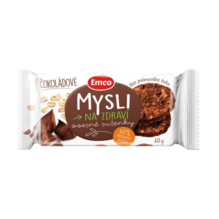 Emco Mysli na Zdraví Ovsené sušienky čokoládové polomáčané v kakaovej poleve 60 g.