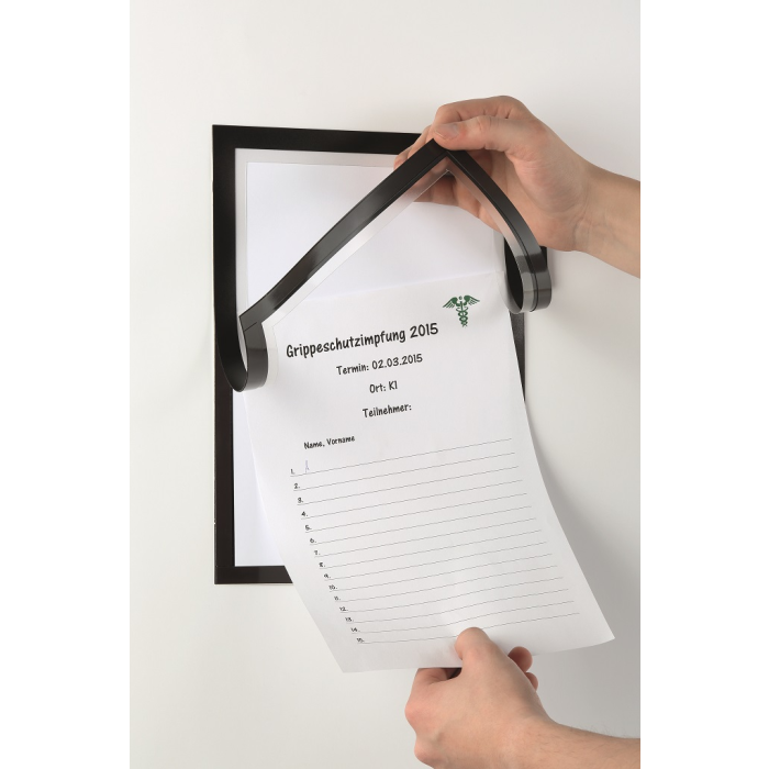 • rýchle vkladanie a výmena dokumentov vďaka výklopnému magnetickému rámčeku