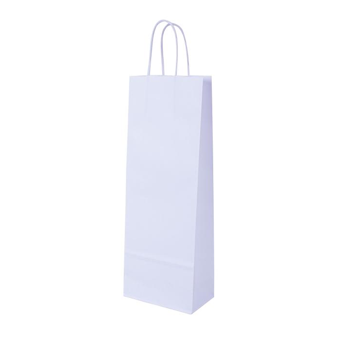 Papierová taška na víno a univerzálne použitie. Farba biela. Ušká stáčané. Cena za kus. Rozmery v mm