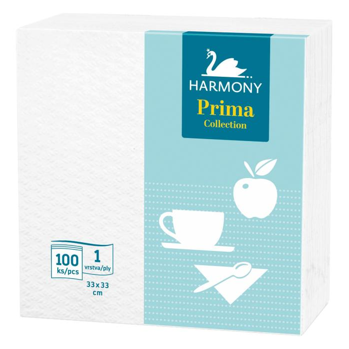 Papierové servítky 1-vrstvové HARMONY Prima 33 x 33 cm biele 100 kusov