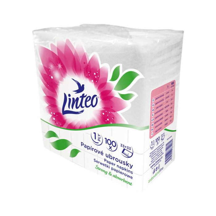 Papierové servítky 1-vrstvové Linteo Satin 33 x 33 cm, biele, 100 ks