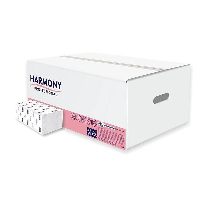 Dvojvrstvové papierové Utierky Harmony Professional skladané, biele zo 100% celulózy.