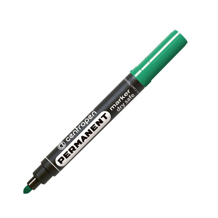 Permanentný popisovač s nevysýchajúcim atramentom (vydrží aj 14 dní bez vrchnáka) na alkoholovej báze, vhodný na väčšinu povrchov. Odolný voči vode, poveternostným podmienkam aj oderu. Hrot okrúhly, šírka stopy 2,5 mm. Väčšie balenie 10 ks v jednej farbe. Farba zelená.