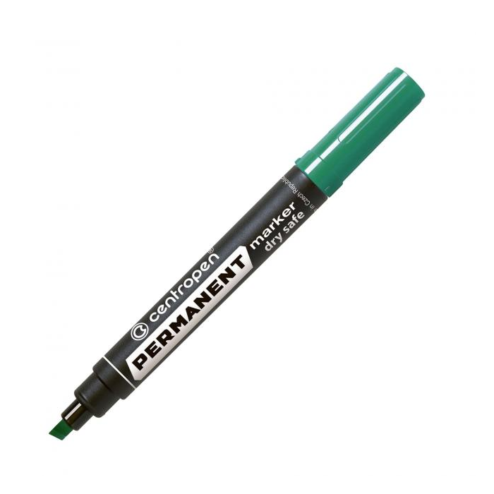 Permanentný popisovač s nevysýchajúcim atramentom (vydrží aj 14 dní bez vrchnáka) na alkoholovej báze, vhodný na väčšinu povrchov. Odolný voči vode, poveternostným podmienkam aj oderu. Hrot zrezaný, šírka stopy 2 - 5 mm. Väčšie balenie 10 ks v jednej farbe. Farba zelená.