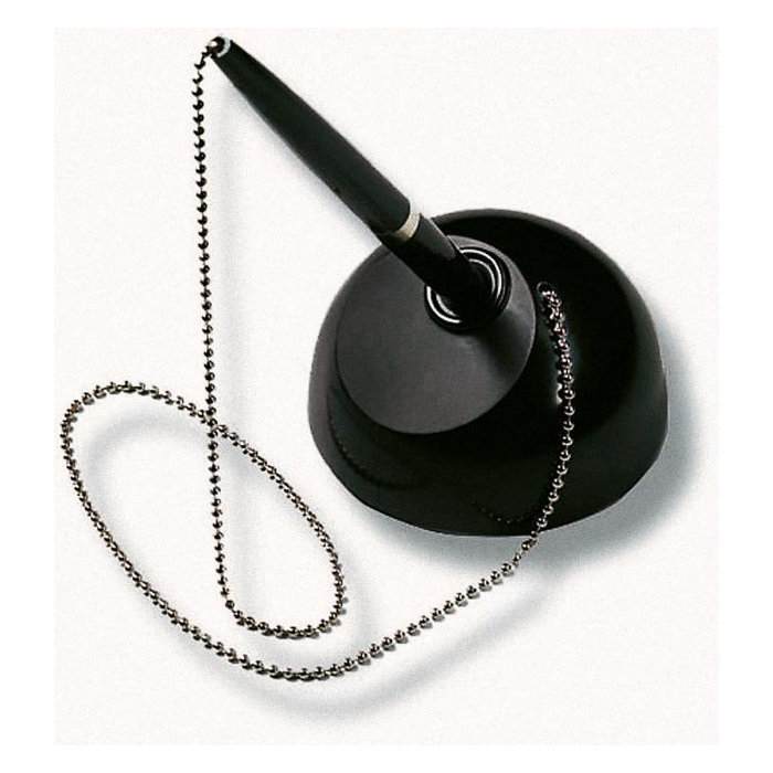 Pero s lesklou pochrómovanou retiazkou, spojenou s guľovitým podstavcom. Farba náplne čierna.