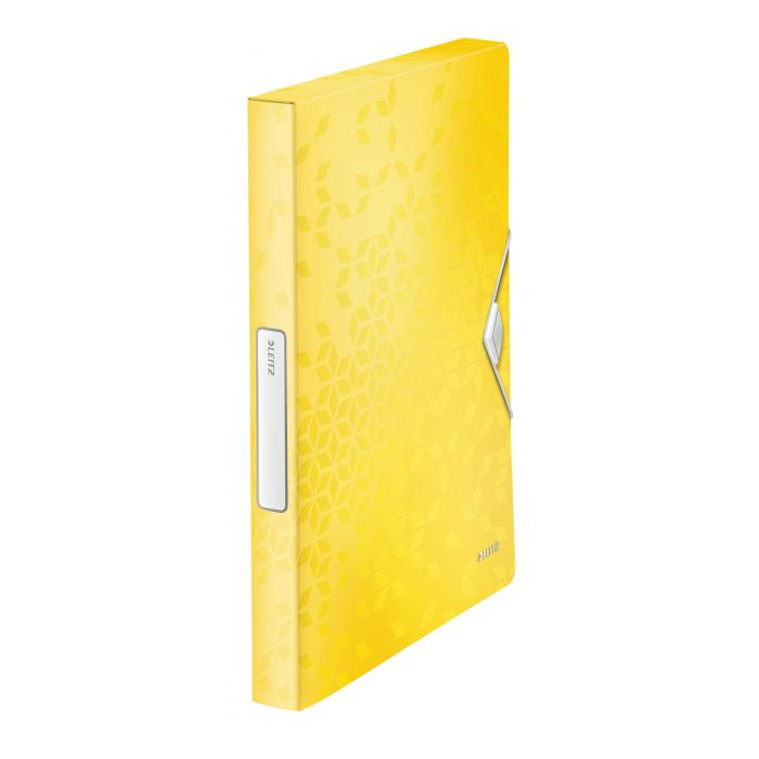 Nepriehľadný polypropylénový box na prenos objemnejších spisov, cenníkov, katalógov a pod. do formátu A4. V dizajne rady WOW v žiarivých farbách. Praktické zatváranie gumičkou na kovový krúžok. Rozmery (v × h × š) 330 × 250 × 37 mm. Väčšie balenie 5 ks. Farba žltá.