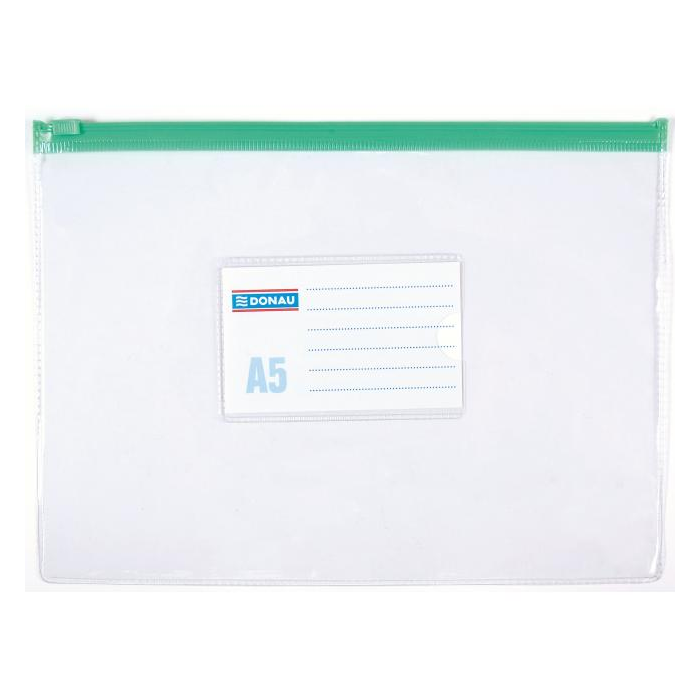 Plastový obal z PVC s uzatváraním na zips a štítkom na popis. Formát A5, rozmery 240 x 180 mm. Väčšie balenie 24 ks.