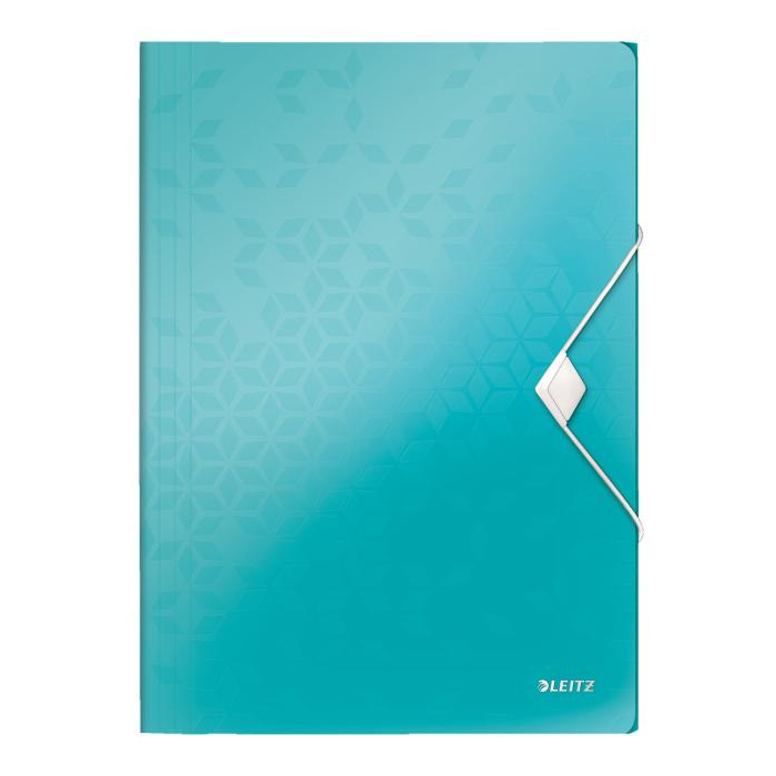 Trojchlopňový obal na dokumenty do formátu A4 z polypropylénu. V dizajne rady WOW v žiarivých farbách. Uzatváranie uchytením na gumičku. Kapacita 150 listov. Väčšie balenie 10 ks. Farba ľadovo modrá.