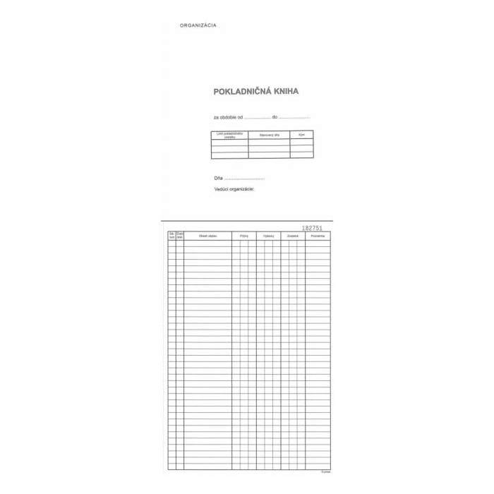 Tlačivo : Pokladničná kniha A4 číslovaná priepisová 50x2 listy samoprepis.