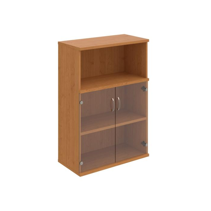 Kombinovaná skriňa - dvere/nika. Kancelárske skrine STRONG majú robustnú konštrukciu a vyššiu nosnosť políc ako bežné kancelárske skrine.V ponuke sú skriňové moduly s výškou 185 cm, 111 cm alebo 74 cm a šírky 80 cm alebo 40 cm. Hĺbka všetkých modelov skriňového radu STRONG je 40 cm.Chrbát, vyrobený z 8 mm hrubých dosák, je obojstranne pohľadový, takže skrine môžete použiť ako priestorový deliaci prvok. Hrúbka samotných políc je 25 mm, čo znamená nosnosť 80 kg na 1 policu.Korpusy, dvierka a police skríň sú olepené odolnou 2mm ABS hranou, ktorá garantuje dostatočnú ochranu proti poškodeniu.