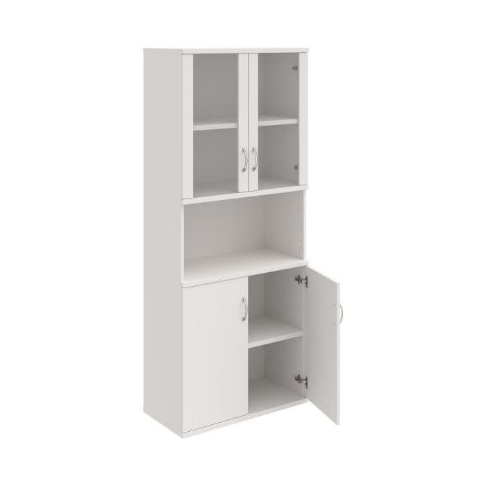 Kombinovaná skriňa - dvere/nika. Kancelárske skrine STRONG majú robustnú konštrukciu a vyššiu nosnosť políc ako bežné kancelárske skrine.V ponuke sú skriňové moduly s výškou 185 cm, 111 cm alebo 74 cm a šírky 80 cm alebo 40 cm. Hĺbka všetkých modelov skriňového radu STRONG je 40 cm.Chrbát, vyrobený z 8 mm hrubých dosák, je obojstranne pohľadový, takže skrine môžete použiť ako priestorový deliaci prvok. Hrúbka samotných políc je 25 mm, čo znamená nosnosť 80 kg na 1 policu.Korpusy, dvierka a police skríň sú olepené odolnou 2mm ABS hranou, ktorá garantuje dostatočnú ochranu proti poškodeniu.