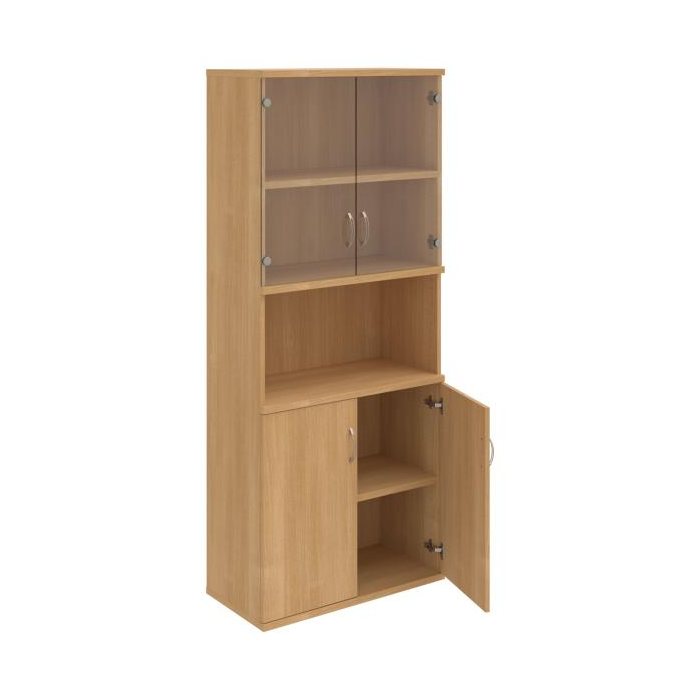 Kombinovaná skriňa - dvere/nika. Kancelárske skrine STRONG majú robustnú konštrukciu a vyššiu nosnosť políc ako bežné kancelárske skrine.V ponuke sú skriňové moduly s výškou 185 cm, 111 cm alebo 74 cm a šírky 80 cm alebo 40 cm. Hĺbka všetkých modelov skriňového radu STRONG je 40 cm.Chrbát, vyrobený z 8 mm hrubých dosák, je obojstranne pohľadový, takže skrine môžete použiť ako priestorový deliaci prvok. Hrúbka samotných políc je 25 mm, čo znamená nosnosť 80 kg na 1 policu.Korpusy, dvierka a police skríň sú olepené odolnou 2mm ABS hranou, ktorá garantuje dostatočnú ochranu proti poškodeniu.