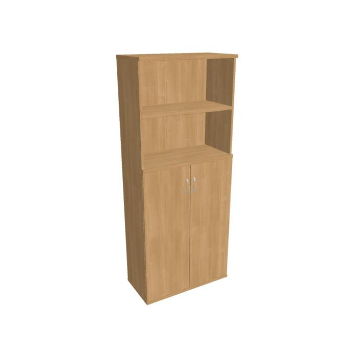 Kombinovaná skriňa - dvere/nika. Kancelárske skrine STRONG majú robustnú konštrukciu a vyššiu nosnosť políc ako bežné kancelárske skrine.V ponuke sú skriňové moduly s výškou 185 cm, 111 cm alebo 74 cm a šírky 80 cm alebo 40 cm.Hĺbka všetkých modelov skriňového radu STRONG je 40 cm.Chrbát, vyrobený z 8 mm hrubých dosák, je obojstranne pohľadový, takže skrine môžete použiť ako priestorový deliaci prvok. Hrúbka samotných políc je 25 mm, čo znamená nosnosť 80 kg na 1 policu.Korpusy, dvierka a police skríň sú olepené odolnou 2mm ABS hranou, ktorá garantuje dostatočnú ochranu proti poškodeniu.