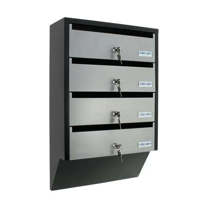 Predstavujeme poštovú schránku so zaujímavým úzkym dizajnom, ktorá je vhodná pre bytové domy alebo polyfunkčné objekty. V jednej schránke sú celkovo 4 priečinky so samostatnými menovkami a cylindrickým zámkom na kľúč. Jej dizajn pomôže ušetriť množstvo miesta, pričom jednotlivé priečinky sa otvárajú smerom nahor. Tento typ poštovej schránky môžete ľubovoľne rozširovať pridaním ďalších rovnakých schránok. Potrebný materiál na upevnenie na stenu je súčasťou balenia.